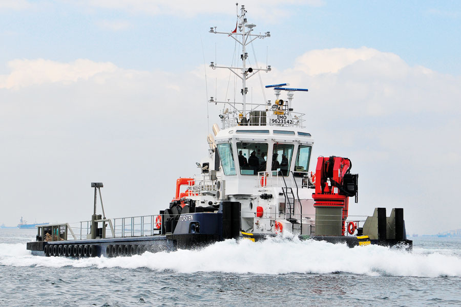 NavTug Flattop TORSTEN, 50t Pfahlzug, wurde 2010 gebaut und ist seitdem Teil der Flotte